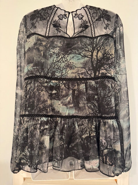 Pre-Owned Harlyn Lace Long Sleeve Sheer Top Size Medium