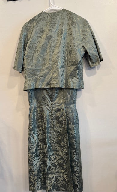 Vintage Japanese Green Bamboo Dress With Top Coat Size Extra Small/ Small