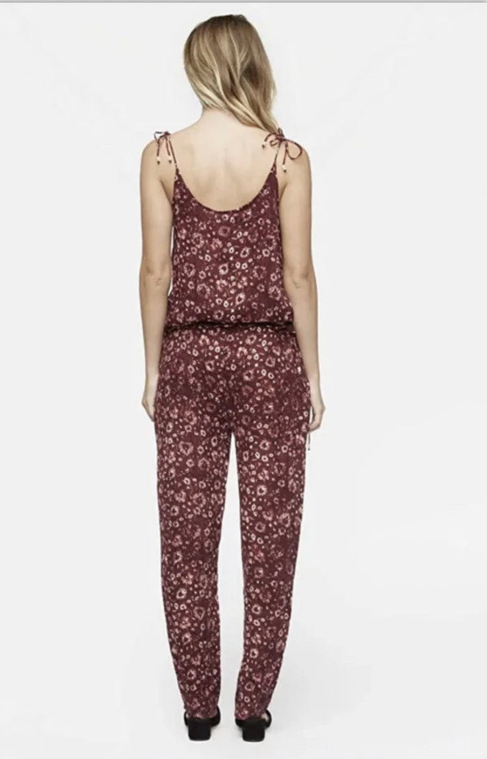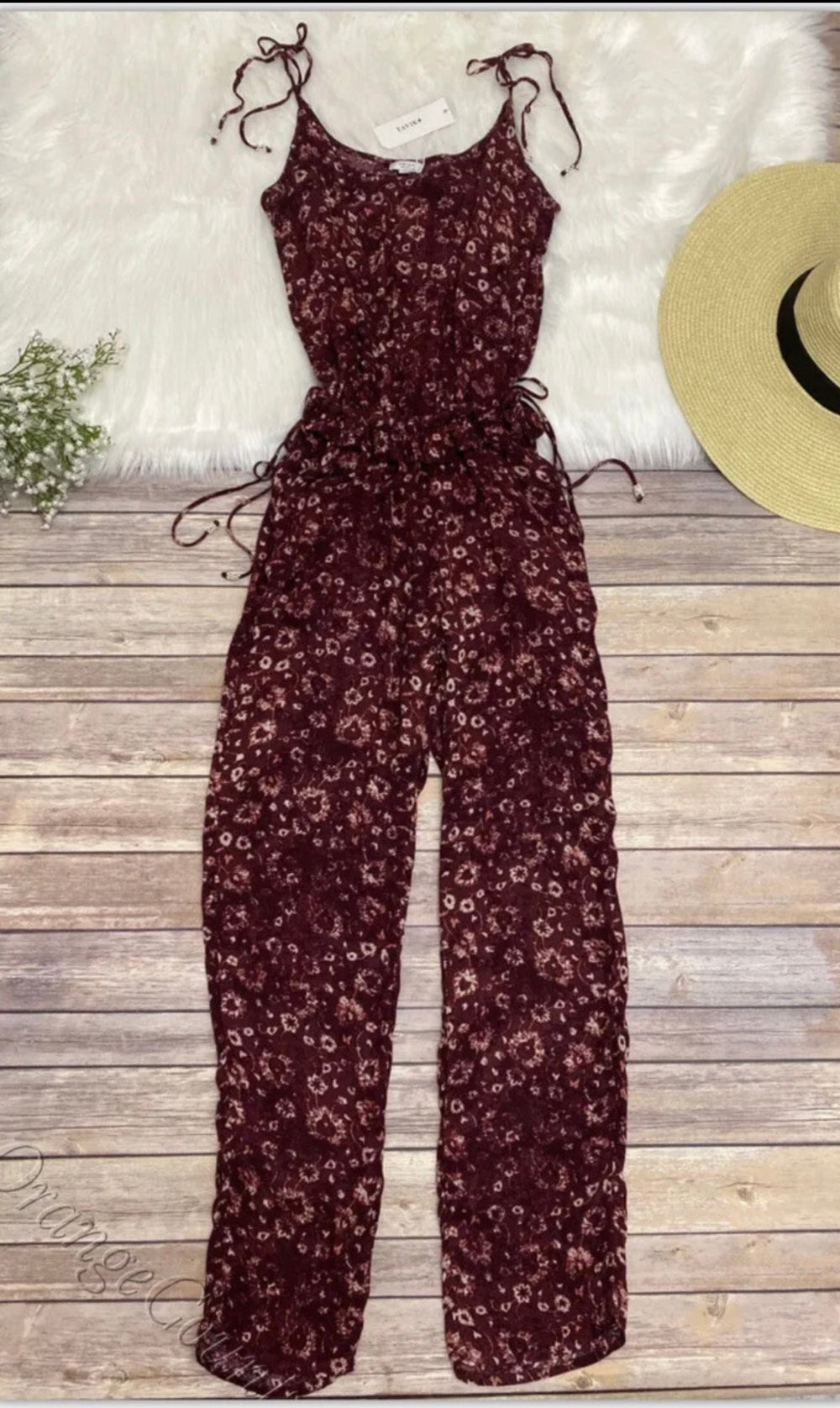 Tavik Preston Pant Jumpsuit featuring adjustable tie straps with beads , 2 side pockets and adjustable drawstring at waist. Burgundy body with floral print. Super soft, breathable and lightweight! Perfect for a day at the beach!