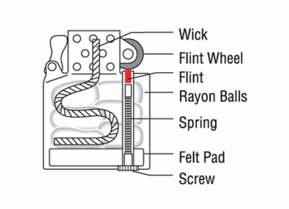 Set of 1 Zippo Flints. Each card contains 6 flints. . To Replace the Flint: Remove screw and attached spring at end of fuel chamber. Remove old flint. Place new flint in tube and replace flint, screw lightly. Turn screw as far as it will go; otherwise, cover will not close completely. If wheel binds after new flint is inserted, turn wheel backwards a few times.